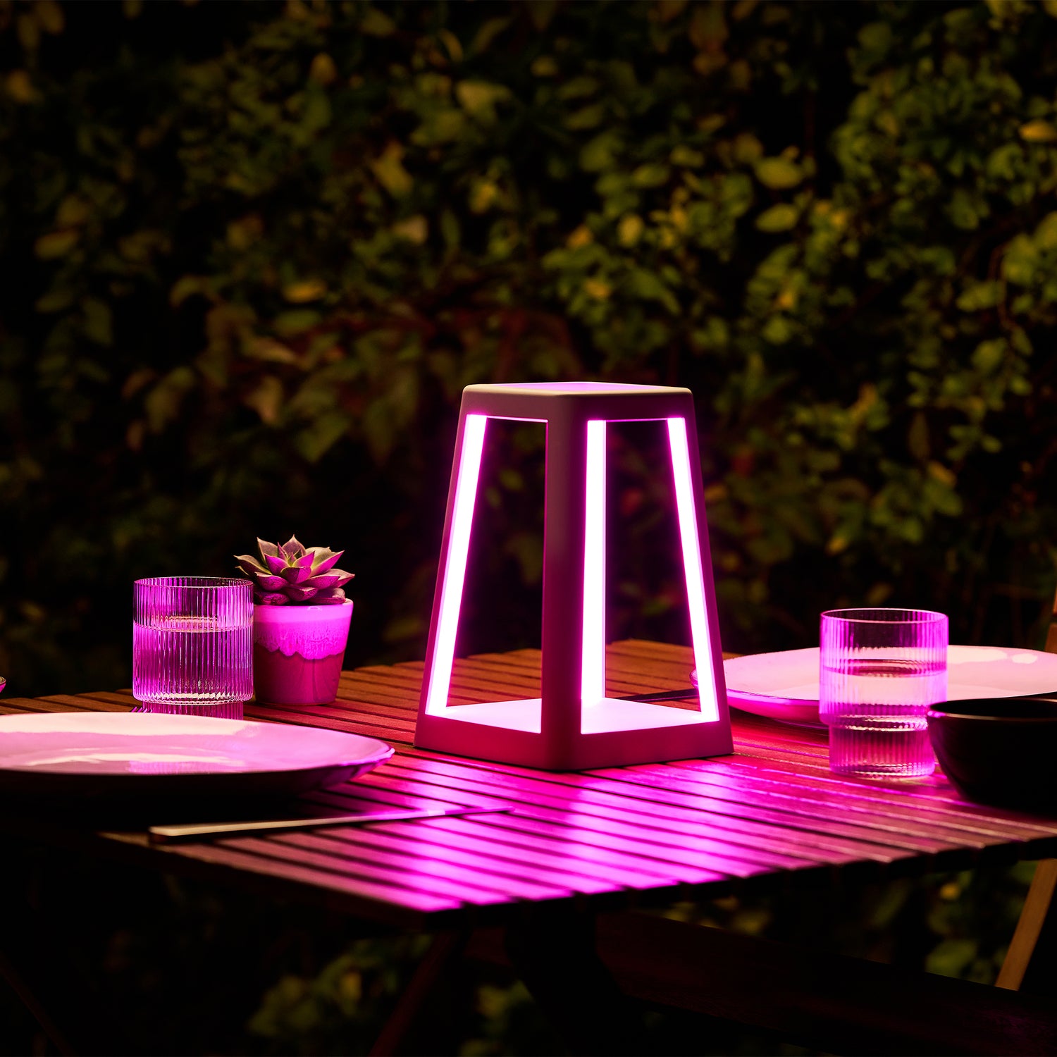 With the Lexon Lantern, you have complete control over your lighting setup. Simply press the touch button situated at the top of the lamp to switch between cool or warm white light, or select one of the 7 different LED colours available. Thanks to its dimmer function, you can adjust the brightness to suit your preferences, crafting the ideal atmosphere for any occasion.