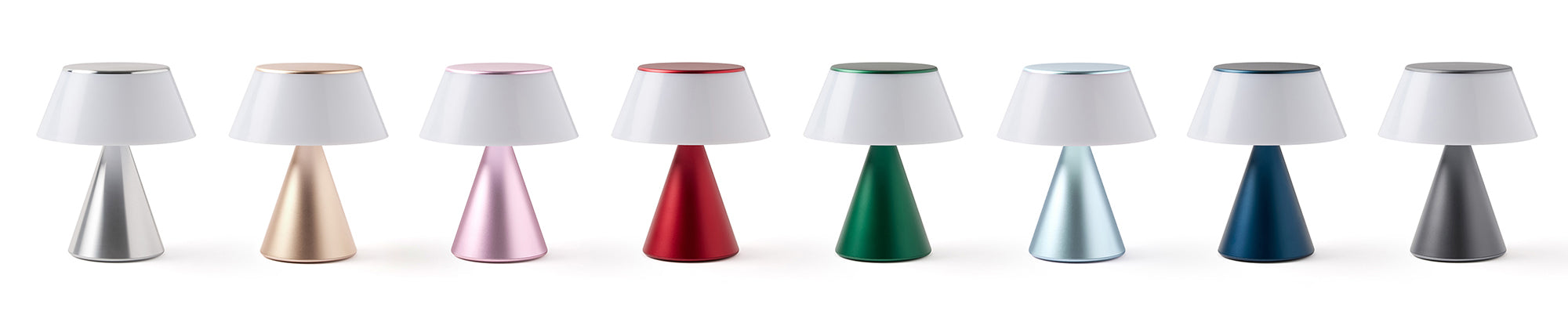 Luma L comes with 9 LED color settings and a dimming feature which can be controlled by tapping the top of the light. Boasting a sleek aluminum base and top, Luma L is available in multiple colors to blend seamlessly into your decor or entertain your guests during an event.